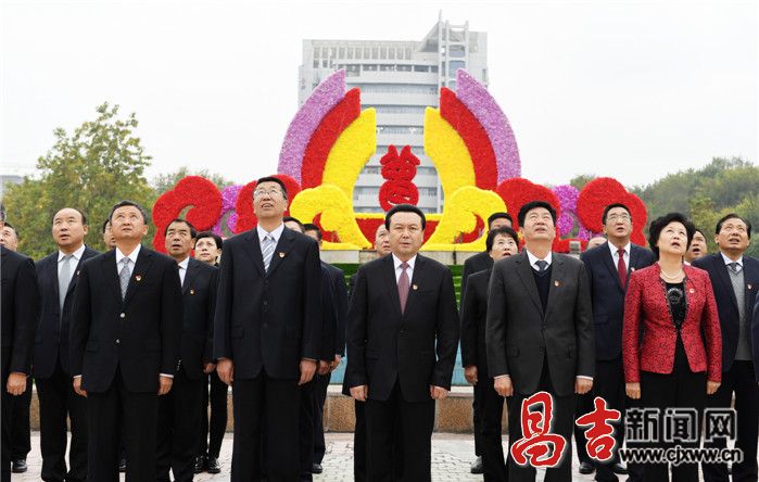 州领导马雄成、索跃、石彦玲、金一鑫、李铁明、陈毅士、程银锁、王炳炬、要建军、彭国春、李翠玲、丁邦文、孟凡刚等州领导参加升旗仪式。