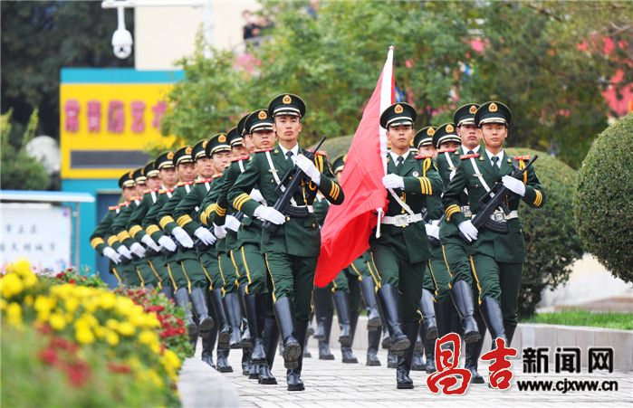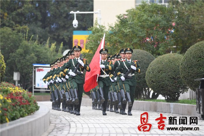 自治区党委常委、州党委书记沙尔合提·阿汗等州四套班子领导与各族群众一起参加升国旗仪式。