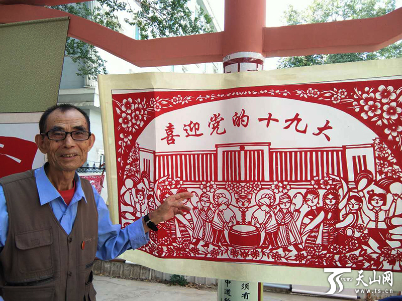 天山网讯(记者马少宾 通讯员朱丽君 陈治宇摄影报道)连日来,在新疆维吾尔自治区昌吉市北京南路街道办光明社区展出了昌吉市剪纸艺人、昌吉市非物质文化遗产传承人郝宪义创作的“喜迎党的十九大”系列剪纸作品,吸引了不少市民前来参观。